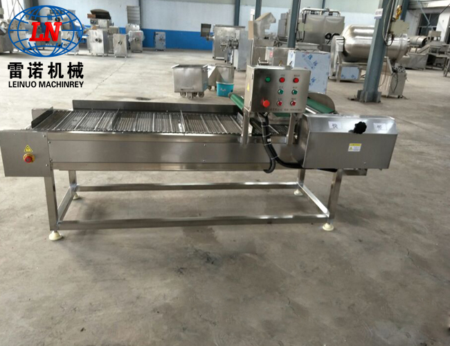 該流水線主要由清洗段、提升輸送段、震動(dòng)瀝水段以及風(fēng)干除水段組成,主要用于袋裝食品的高低溫殺菌后,產(chǎn)品表面油污、油漬的連續(xù)清洗及風(fēng)干。